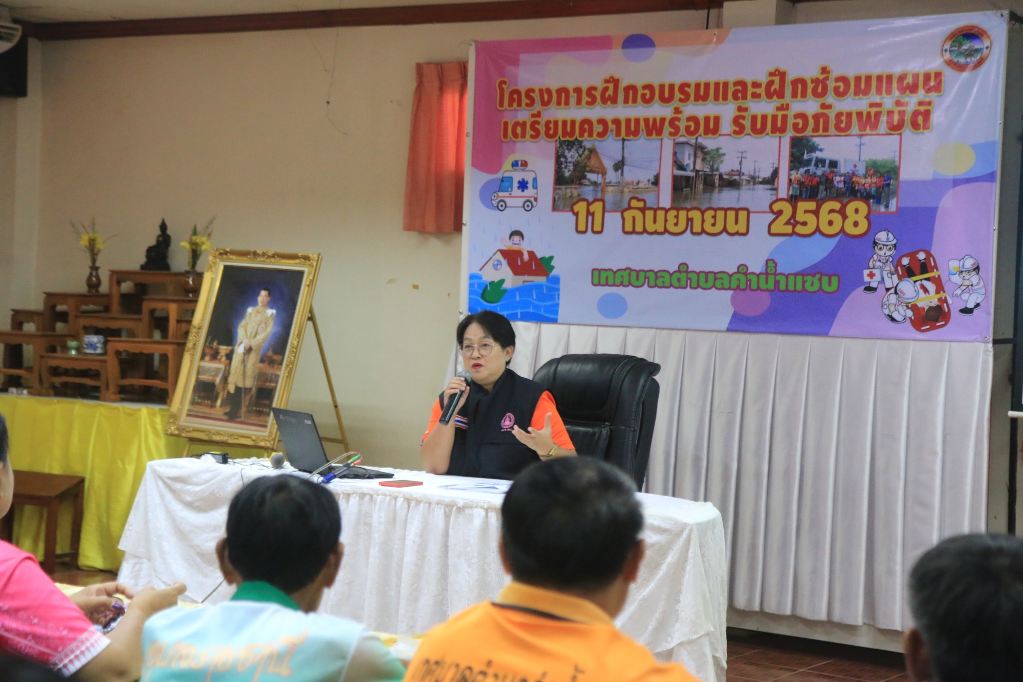 วันที่ 11 กันยายน 2568 โดยท่านบุญมี จันทอง นายกเทศมนตรีตำบลคำน้ำแซบมอบหมายให้ท่านเฉลิมพล ทัดเทียม เป็นประธานเปิดโครงการฝีกอบรมและฝึกซ้อมเตรียมความพร้อมรับภัยพิบัติ ณ ห้องประชุมแคนค้ำคูณ เทศบาลตำบลคำน้ำแซบ โดยมีผู้นำหมู่บ้าน เข้าร่วมฝีกอบรมเพื่อเตรีย