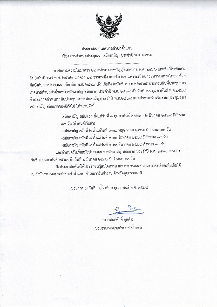 ประกาศกำหนดประชุมสภา สมัยสามัญ ประจำปี 2569