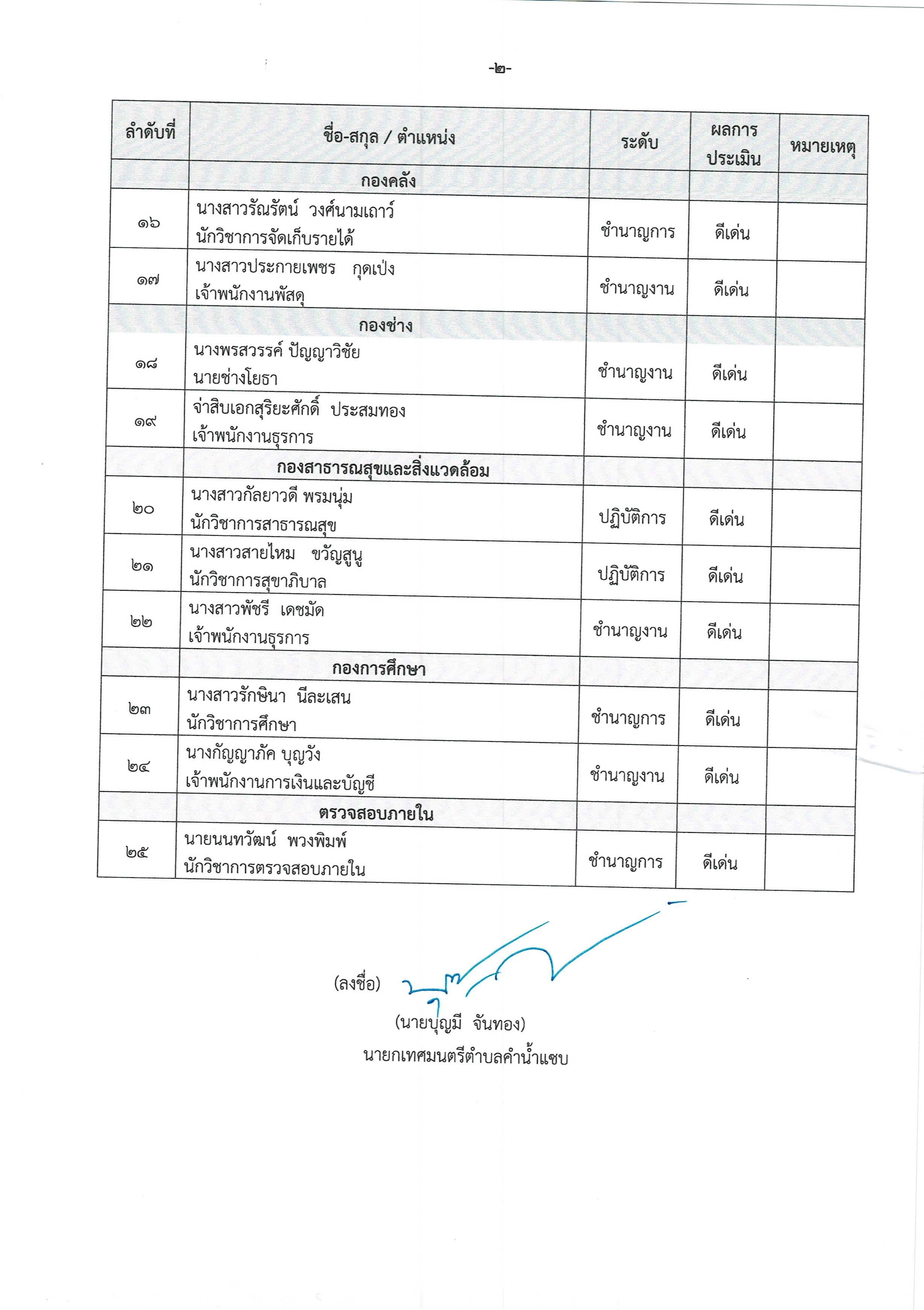 ผลการประเมินผลการปฏิบัติงานเพื่อเลื่อนขั้นเงินเดือนพนักงานเทศบาลตำบลคำน้ำแซบ และลูกจ้างประจำ ประจำปีงบประมาณ 2568 ครั้งที่ 2 (1 เม.ย.-30 ก.ย.68)