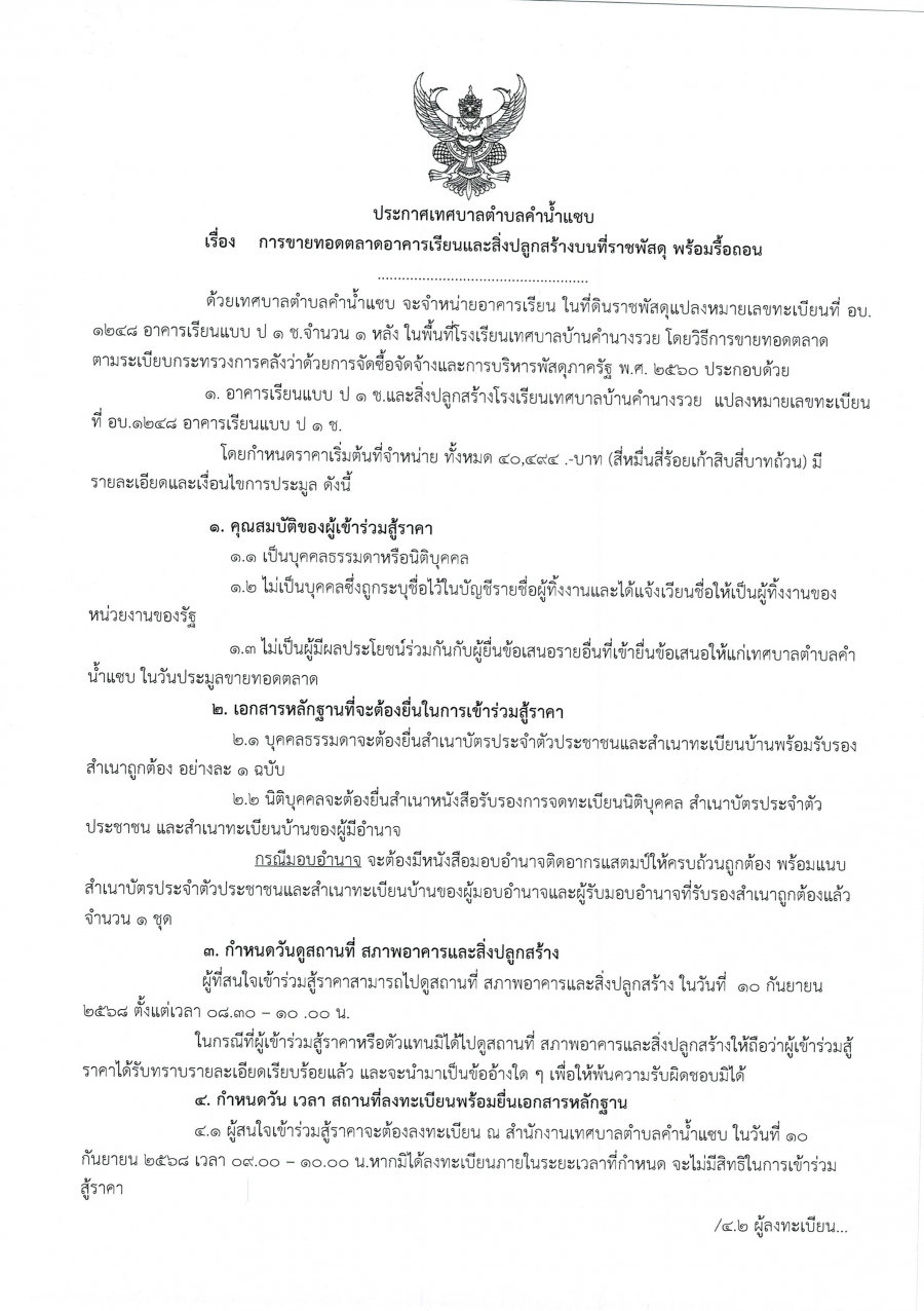 ประกาศการขายทอดตลาดอาคารเรียนและสิ่งปลูกสร้างบนที่ราชพัสดุ พร้อมรื้อถอน